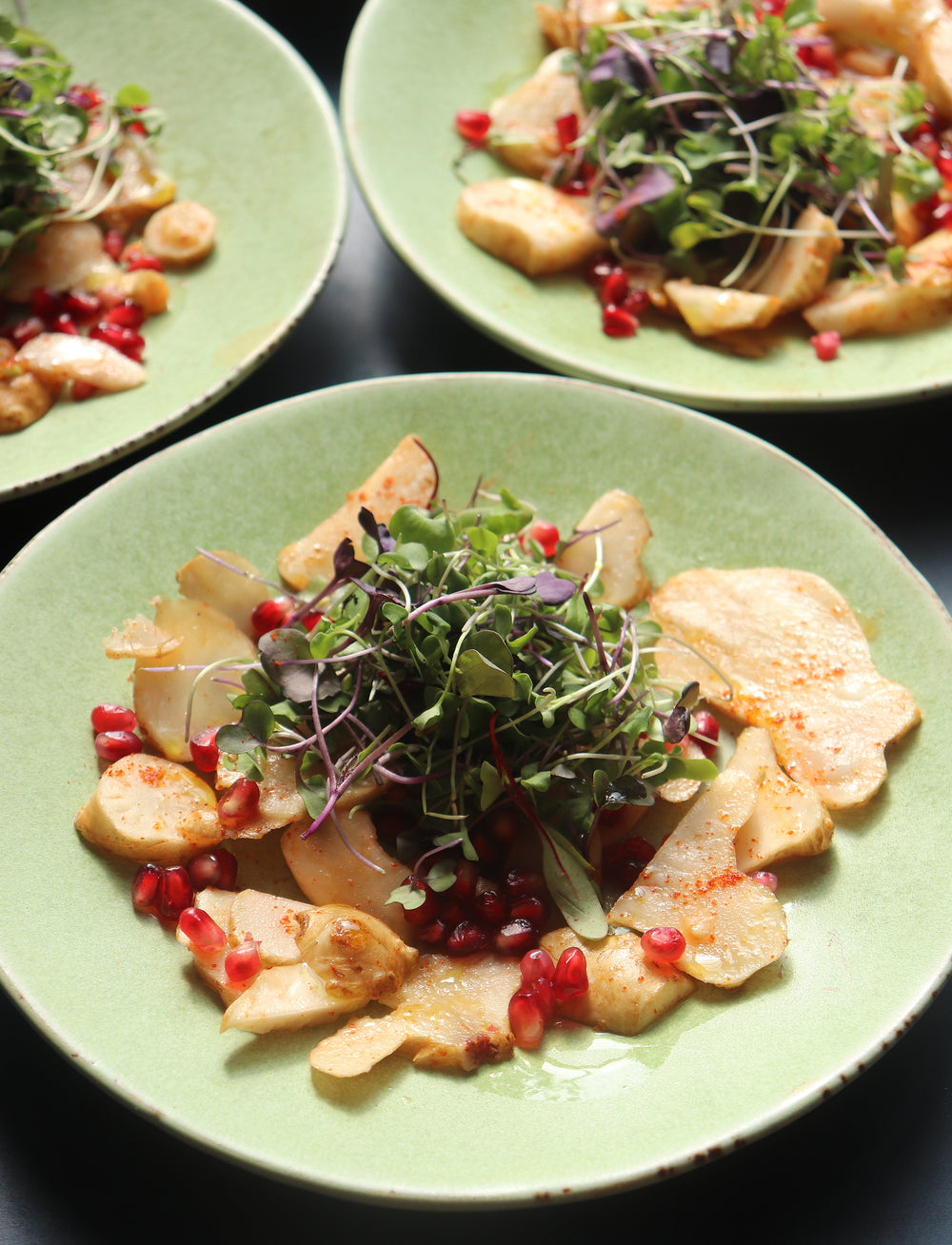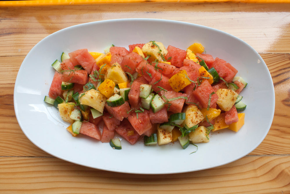 It’s taken decades of experimenting and tinkering for me to endure and appreciate the Indian bitter melon, a vegetable not easy to love. Knowing the vast nutritional benefits of eating bitter foods, I know we all need to incorporate more of them into our diets. So last week when Karen Man, the co-chef of the renowned now shuttered Oxheart restaurant walked into my house one morning for a cup of chai with a small container of a bitter melon salad, I mentally regarded it with mild suspicion and quickly placed it in the refrigerator, to be tried later. Raw bitter melon? I wasn’t so sure. That evening, I inhaled it in no time, beside myself with excitement. The Chinese bitter melon, I find out later, is not quite as bitter as the Indian karela and Karen had tossed in mango, onion, tomato and tempered it with a good dose of lemon juice, which removed the last vestiges of bitter and made the seeds edible.