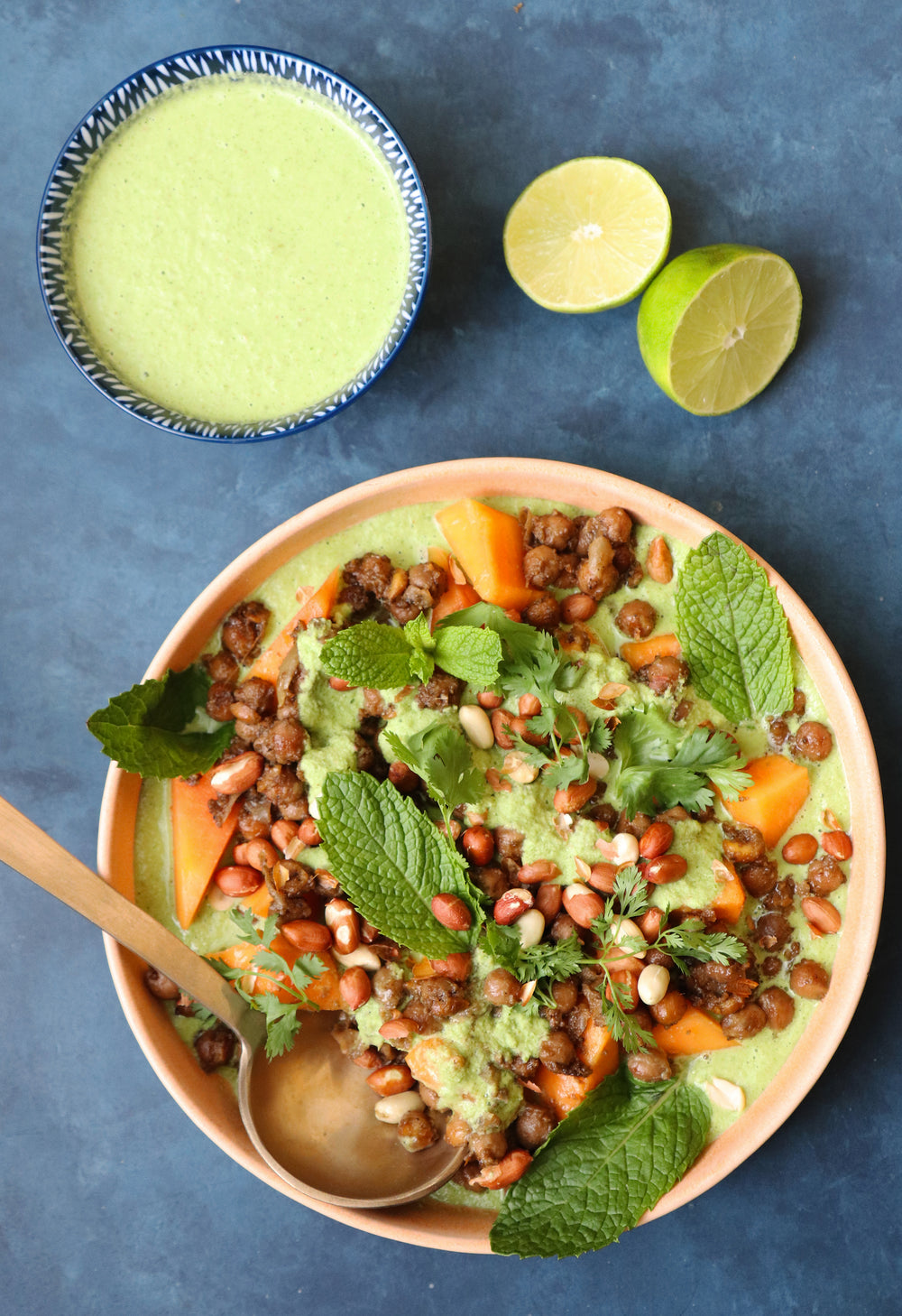 Often called kala channa, black chickpeas are the smaller, darker, and more intensely flavored cousins of the larger tan ones. They are firmer in texture and not as easy to puree as tan chickpeas. However, they make a great addition to a soup, salad, pilaf, or stir-fry and are high in fiber, protein, and iron. If you can’t find these at your local Indian grocer, you can find them online. The California heirloom bean company Rancho Gordo grows a variety they call desi channa. I would suggest doubling the recipe and keeping half the chickpeas aside to create your own chaat combinations.