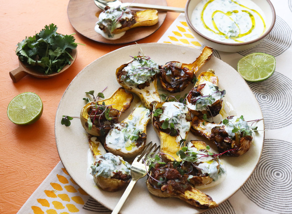 - Replace mustard with cumin seeds. Top with roasted peanuts instead of pumpkin seeds and cilantro instead of mint.