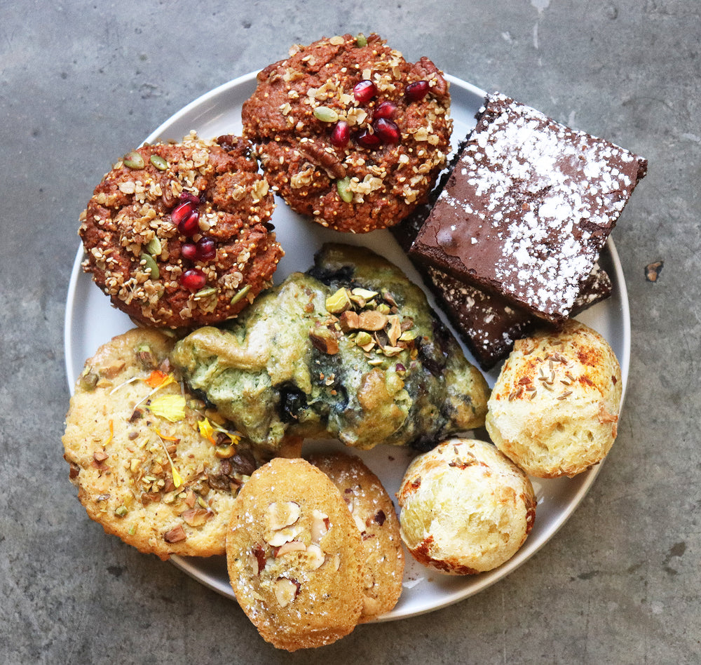 A handmade spice box containing masala cashews, spiced walnuts, pumpkin & sesame seeds, pine nuts, masala pistachios, hazelnuts & almonds.