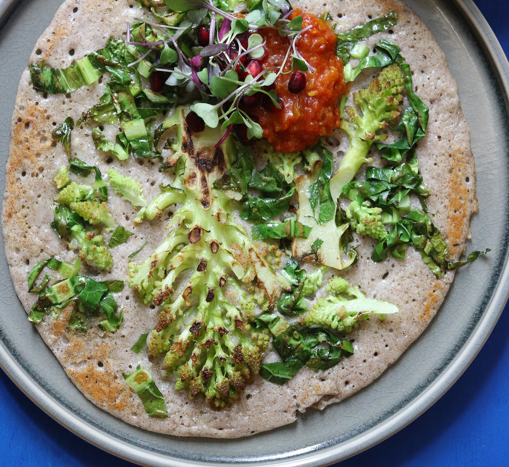 The Sichuan pepper, also known as prickly ash, belongs to the citrus family. It produces a unique but delicious numbing, tingling effect on the tongue and can overpower other flavors — so use with caution. While the Romanesco roasted in the oven, I made the masala on the stovetop; within 30 minutes, we had a delicious dish to eat on its own or as a side.