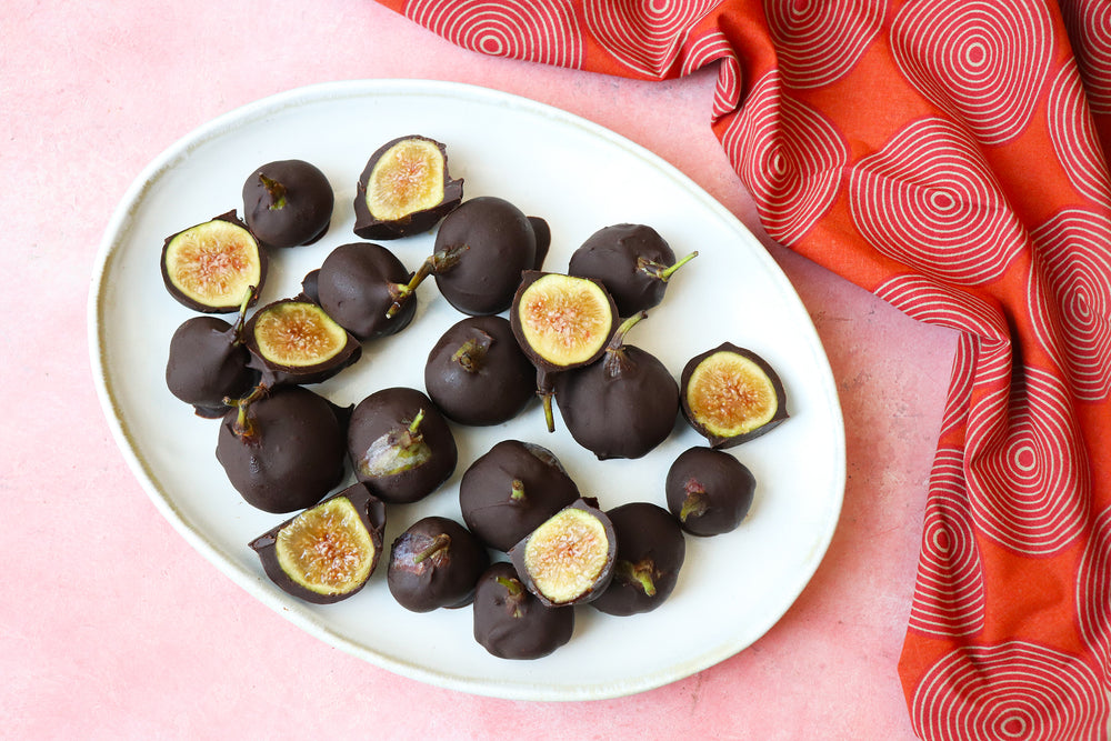 Weather patterns due to climate change are evident in almost all spheres of life. While Houston has a vibrant cycle of summer fruits from peaches to blackberries, figs that used to appear late summer or fall have been at the farmers market much earlier this year. Fall fig sightings are usually followed by cool breezes but this time around, we have a long summer to contend with. But how wonderful that we get to enjoy figs for perhaps a longer harvest period? A fig is a delicate luscious, sweet fruit, however quick to spoil so usually, must be consumed within a few days of harvest. It is delicious just on its own, or sliced and tossed into salads or even slightly roasted but nothing preserves and enhances the flavor of figs like a coating of dark chocolate with a hint of aromatic spices. The chocolate dipped figs can be eaten whole or sliced and served over ice cream for a beautiful, elegant dessert. Buy the best quality chocolate you can as this will make all the difference.