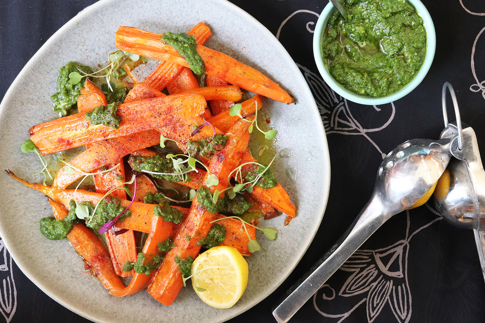 Flavors of bright herbs are highlighted in these dishes. Key is to not overcook the chicken to keep the flavor & the bright green natural color!