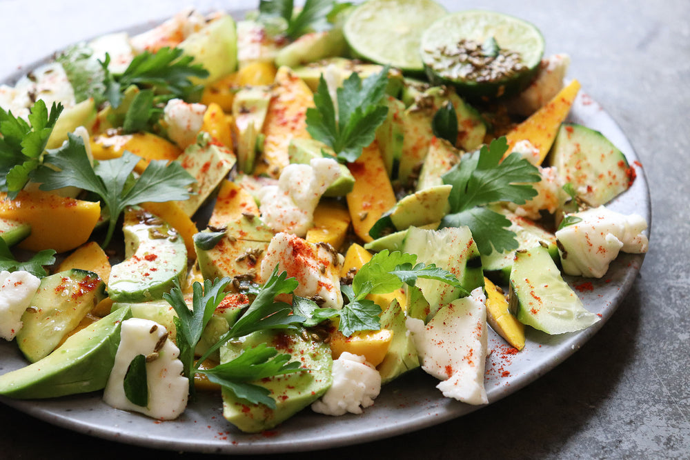 My little grandson Lion was about to come over and I needed something to feed him. I turned it all into a salad with a quick goat cheese and yogurt spread and there, a new dish was born! Lion, despite barely having any teeth, lapped it up with great enthusiasm. The texture of the tomato and plum is similar which made it fun to eat as they were indistinguishable until well into the first bite. A more adult version of that salad included toasted whole buckwheat, which gives it a lovely crunch. You could use toasted nuts instead or just leave it out entirely. But don’t forget to go buy those tomatoes at the Urban Harvest farmer’s market – they actually taste like tomatoes!