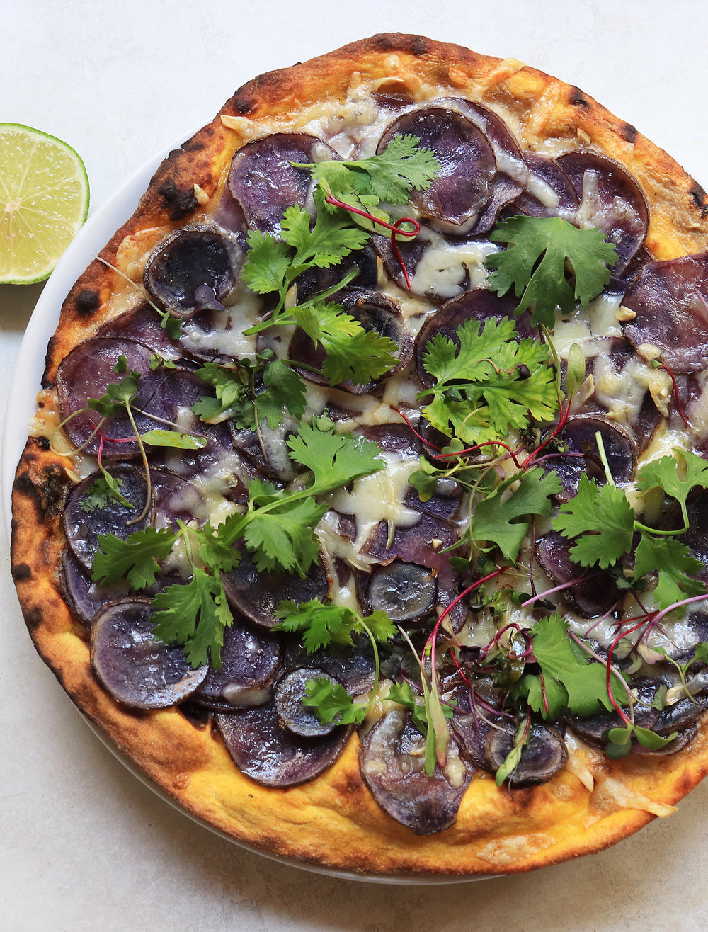 What I personally like about them is that they are not as sweet as the orange or white sweet potatoes. The best way to cook them is to roast or braise since nutrients can be lost while steaming. Accompanied with yogurt flecked with cumin and a flavor packed herb masala, these potatoes are bound to become your new favorite starch. Add these to your holiday table for a bright splash of color and flavor! Purple sweet potatoes can be found in most grocery stores as well as in Asian markets.