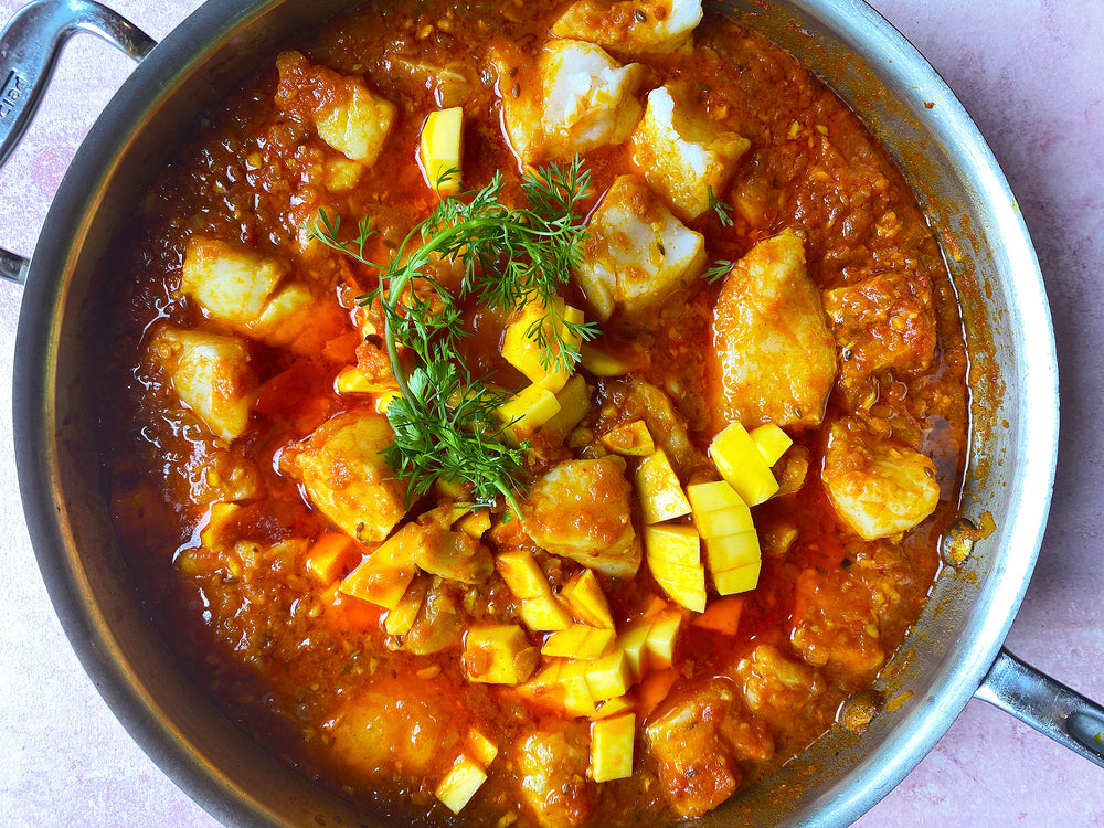 - Instead of fish, use prawns or scallops but reduce the cooking time. Or use vegetables like squash, potatoes, or okra – just adjust the cooking time as needed.