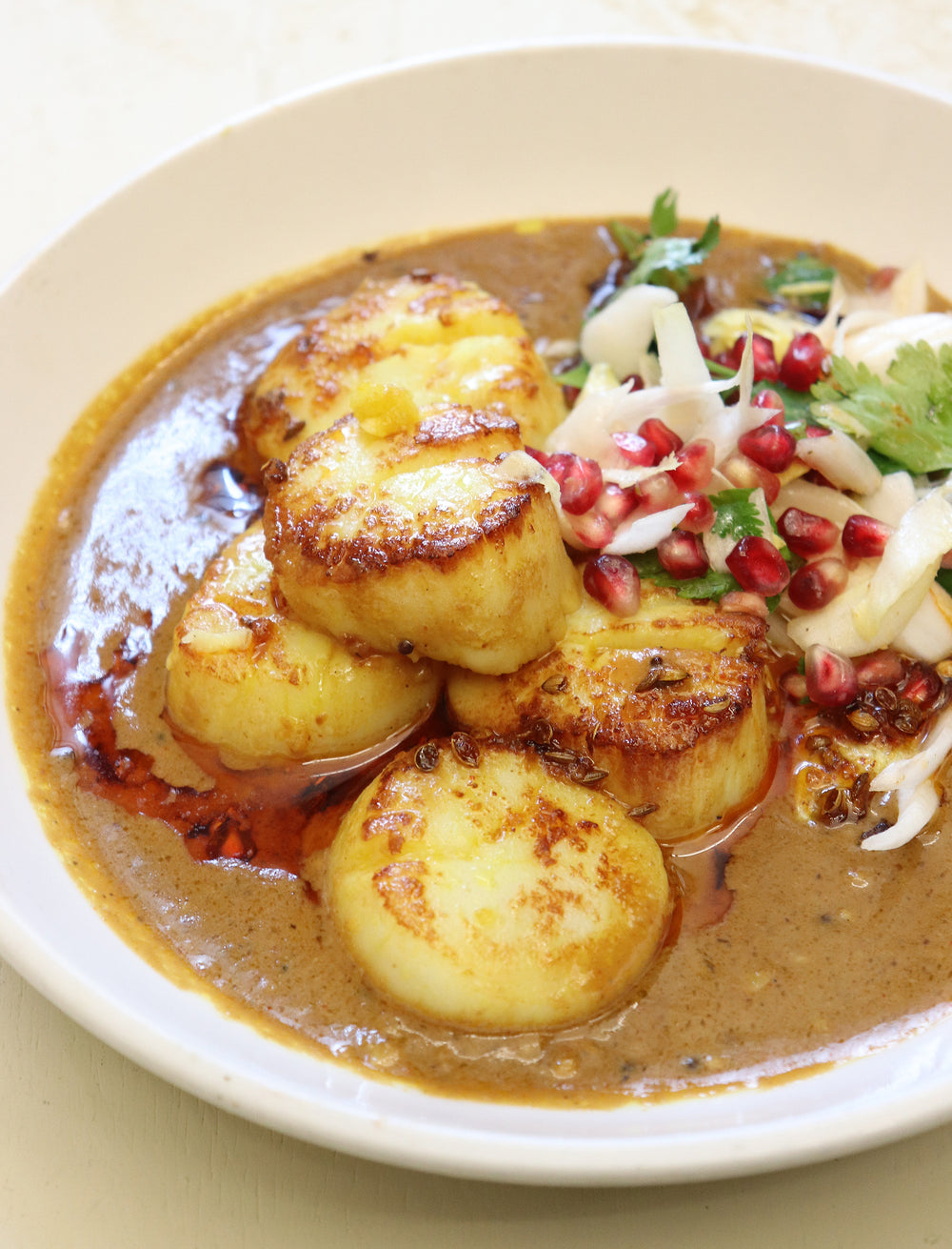 - Replace the pumpkin seeds with nuts. Pine nuts in particular work well with scallops.