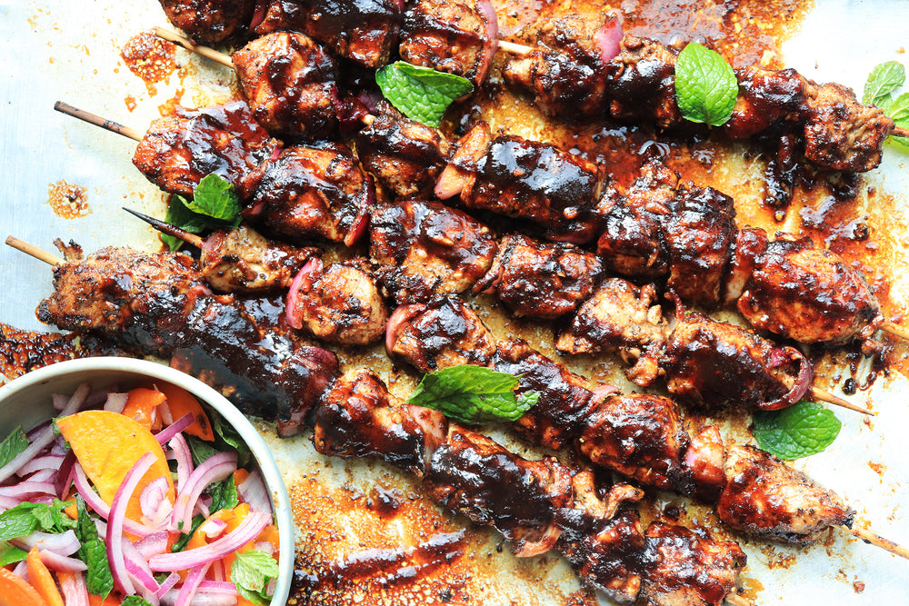 Tamarind may have originated in Africa but it’s very popular in the cuisines of Asia from India to Malaysia. You can make the turkey kebabs ahead of time and finish in the oven when ready to eat. Here is a tamarind glaze that will not only be delicious on grilled vegetables like butternut squash or zucchini but also on meats like chicken or lamb. The glaze will keep in the refrigerator for up to a month. The brine helps keep the meat plump, juicy and filled with flavor. Give it a try this year and I promise you, there won’t be much leftover.