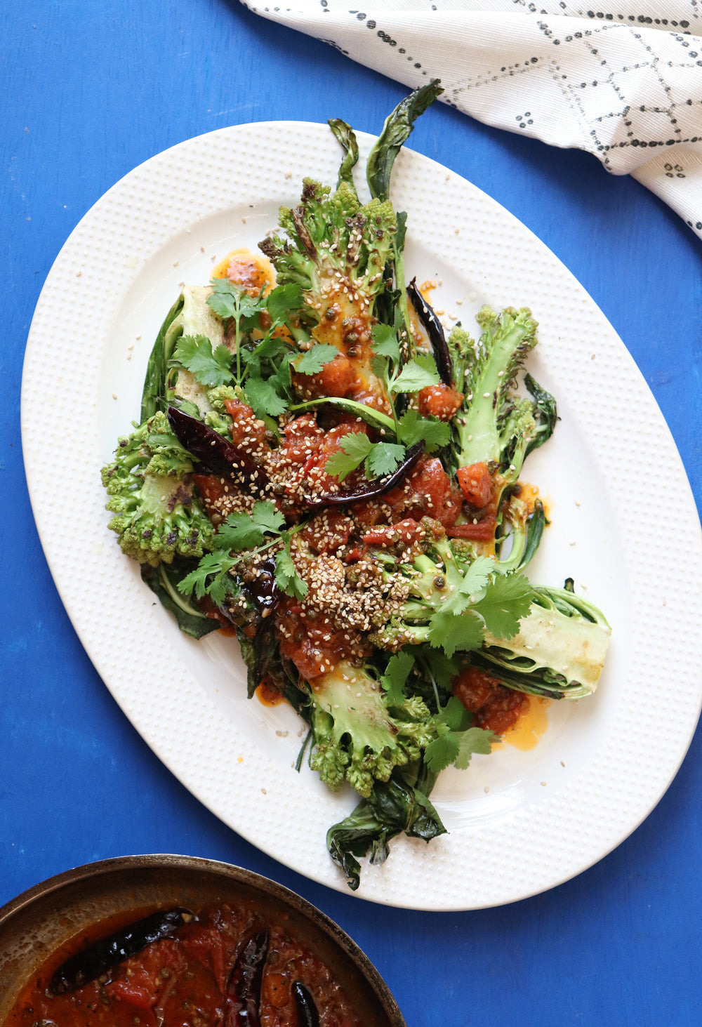 - If you have any jackets or leaves of the cauliflower to use, add them to the baking pan when you add the masala. This way they will cook through but remain bright green.