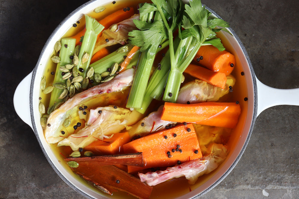 Crushing spices helps incorporate their flavor into the broth and black pepper and cloves have been a home remedy for sore throats for millennia in India. Dairy can often make congestion worse, so I used coconut milk instead – it’s also easier to digest. The soup has more vegetables than chicken, which makes it even more nourishing. Make sure to use chicken on the bone for best results.