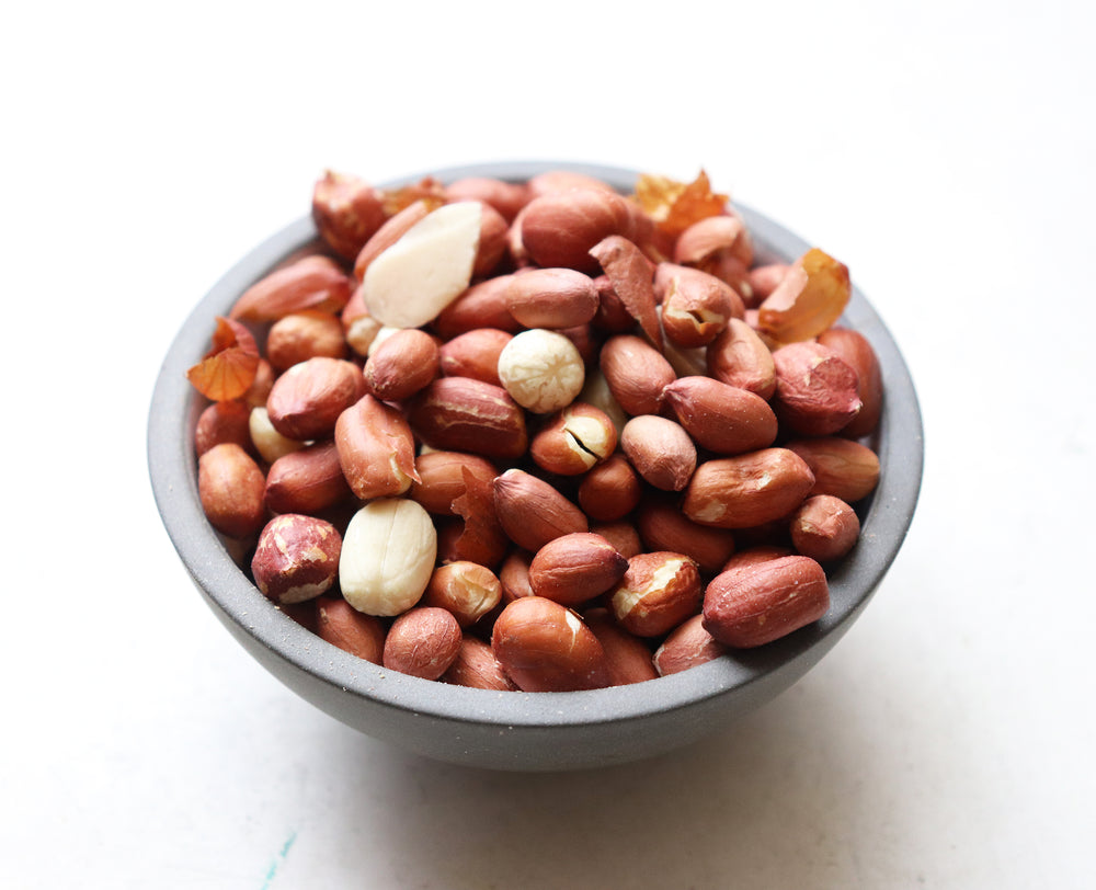 Commonly seen in the streets of Gujarat, sand peanuts were a particular favorite of Mahatma Gandhi. Roasting these peanuts with skins over sand & salt imparts a tremendous flavor. The sand is sifted off, leaving them with a richly salted toasted flavor.